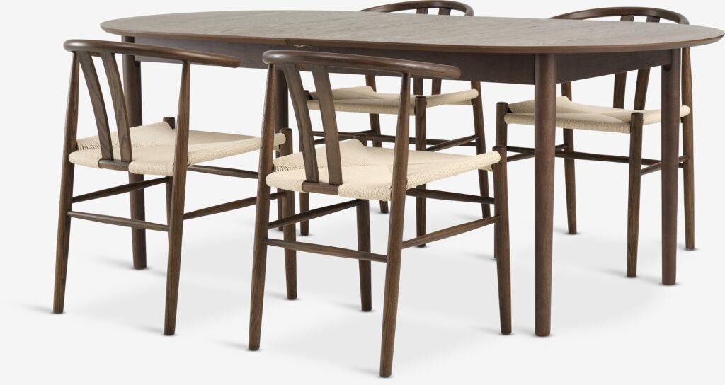 Original produktlink: https://jysk.dk/spisestue/spisebordssaet/marstrand-l200/280-bord-moerk-eg-4-guderup-stole-moerk-eg